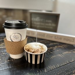 Fantastic coffee, delicious gelato, nice ambience indoors and out. Great location downtown for shopping.
