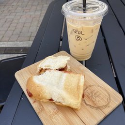 Convenient place to grab something quick and light before walking around town. Everything was very reasonably priced in my opinion. The bathroom is for customers only. It's outside and up the stairs or the elevator and you get the key from the workers. Drink came out right away, food took about 10 minutes. It was pretty busy when I got there, about 9:50am on a Sunday. Plenty of parking this early in Downtown Lodi. The breakfast food selection is nice bc it's not over whelming. Burrito with egg and bacon or egg and sausage. A few paninis, avocado toast you can add meat or eggs to & then a good assortment of pastries!